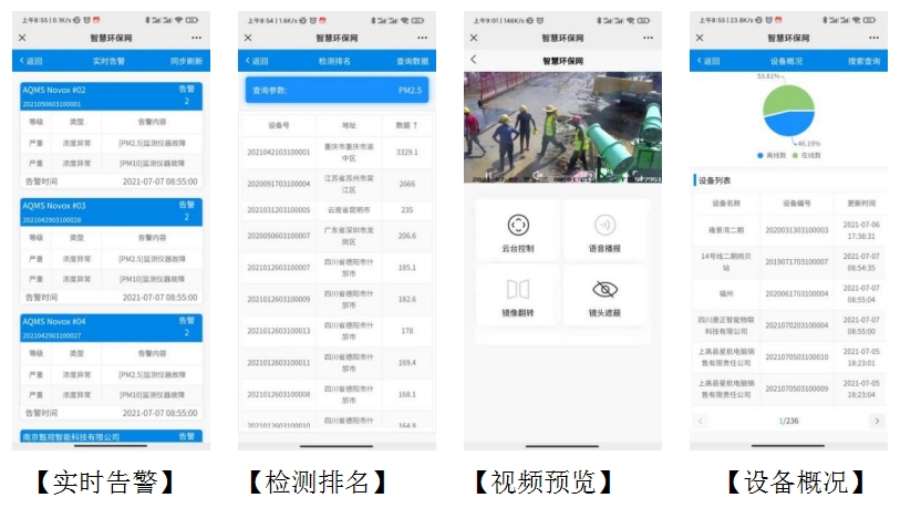 3手機端 智能云數據分析軟件(包含有微信公眾號、微信小程序、APP),基于粉塵在線式環境監測系統,向用戶展示實時監測數據、及最近48小時歷史數據、最近30天日平均歷史數據、設備在線狀態并推送超標報警信息,綜合分析管理數據,可實現遠程查看了解設備所在區域的粉塵污染情況。為用戶提供精準穩定、有保障的參考信息,及時有效地對轄區內的粉塵污染狀況進行診斷。