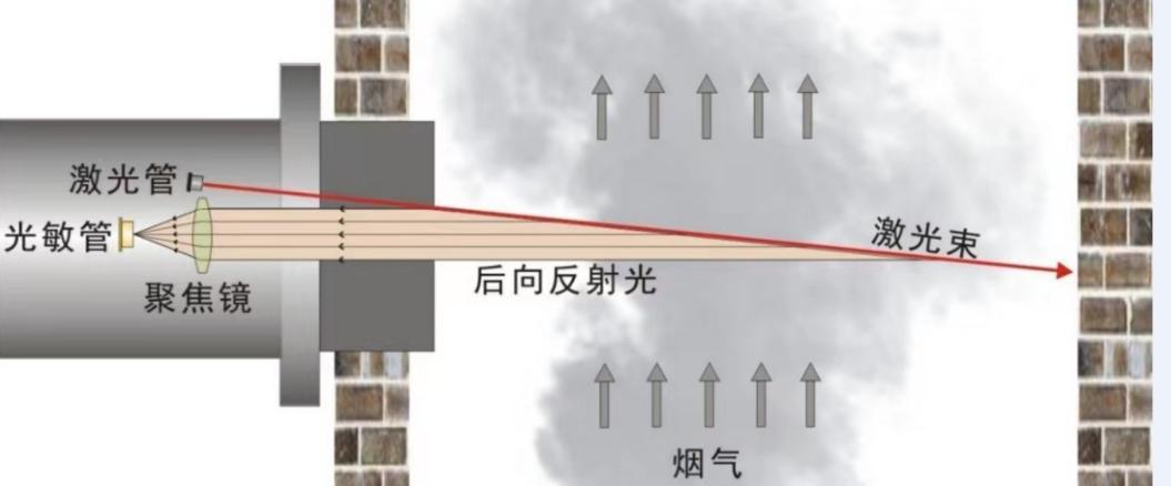 激光后散射粉塵(煙塵)儀采用激光后向散射測(cè)試原理完成對(duì)被測(cè)煙道的煙塵濃度的測(cè)定,其內(nèi)嵌的高穩(wěn)定激光信號(hào)源穿越煙道,照射煙塵粒子,被照射的煙塵粒子將反射激光信號(hào),反射的信號(hào)強(qiáng)度與煙塵濃度成正變化。檢測(cè)煙塵反射的微弱激光信號(hào),通過(guò)特定的算法即可計(jì)算出煙道煙塵的濃度。